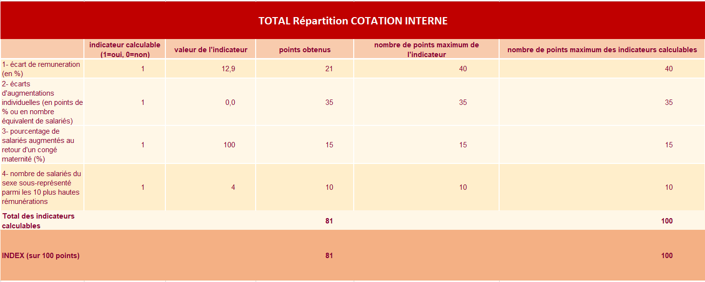 La société ADN a atteint les 81 points/100 (supérieur à 75 points qui nous obligerait à apporter des corrections) et poursuivra ses efforts pour les années à venir pour optimiser son index :